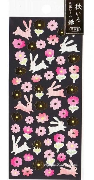ウサギ 動物 秋色 和柄シール うさぎ しーる 秋 花柄 秋桜 コスモス どうぶつ アニマル ラビット 卯 兎 金の箔押し シール