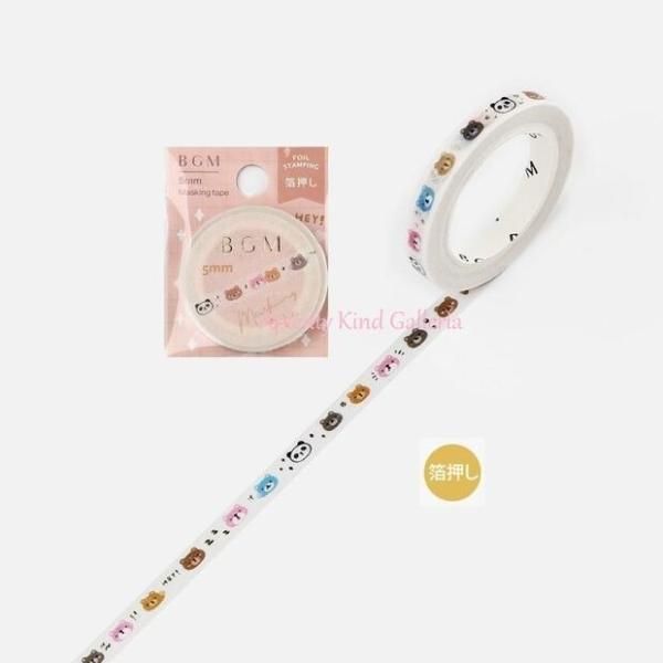 ★ ビージーエム 幅5mm マステ 箔押しシリーズ ラインテープ/くま ぱんだ 熊 パンダ柄 フェイスデザイン Bear Panda