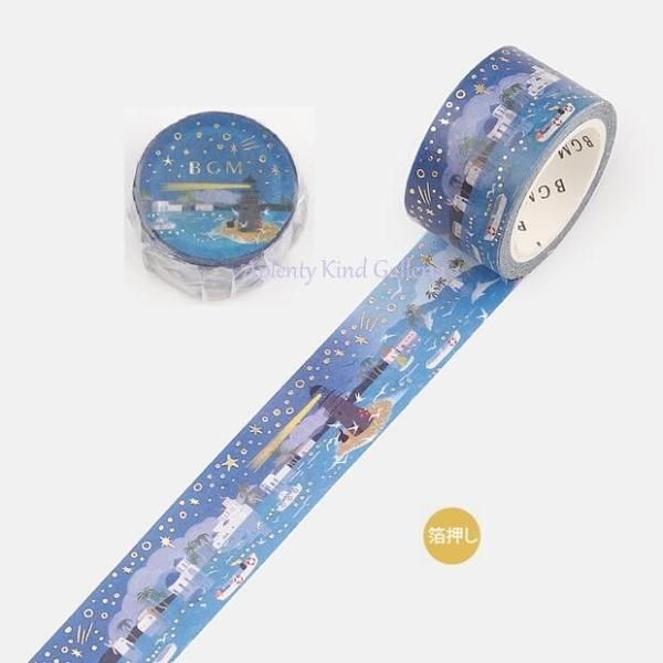 ★ ビージーエム 幅20mmマステ 夜景 景色 星空 海辺 かもめ ピアノ柄 umi sea うみ柄 とうだい ワイドタイプ 広幅
