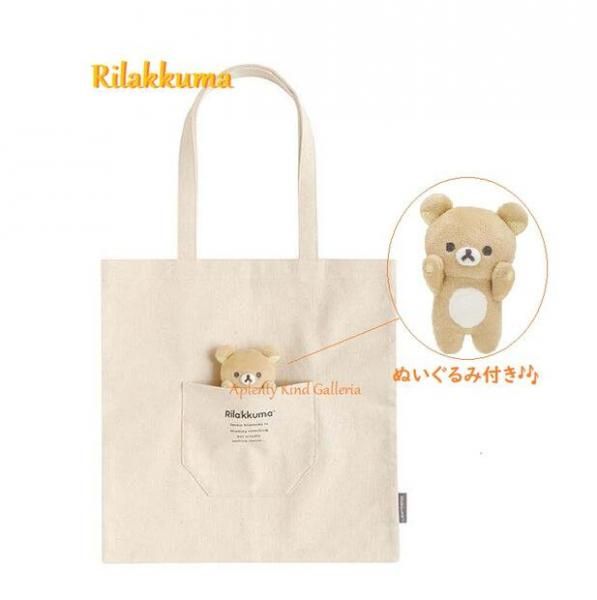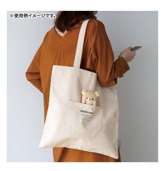 リラックマ サイズ: 約400×390mm 帆布 カバン たっぷり入ります エコバッグ 学校 サブバッグ 仕事 書類 収納 ショッピング Bag シンプル ナチュラル 生成