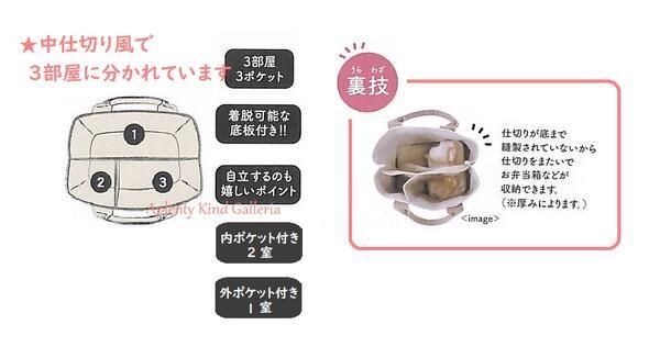 かわいい ちびのミイ MINI BAG 3部屋に 分かれて 収納しやすい 一目で分かる 行方不明がなくなります 底板付き 自立します 仕切をまたいで お弁当を収納可能 便利