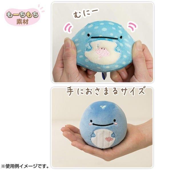 大人気のじんべえさんのお友達迷子のコクジラちゃん!手におさまるサイズのスーパーモチモチ真ん丸ぬいぐるみ!お腹にひとでの刺繍つき!触り心地最高♪