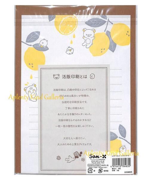 伝統的な印刷技法 上品な活版印刷のレターセットです。リラックマとレモンのデザインが爽やか☆お礼のお手紙に こだわりの色合いの封筒もセット
