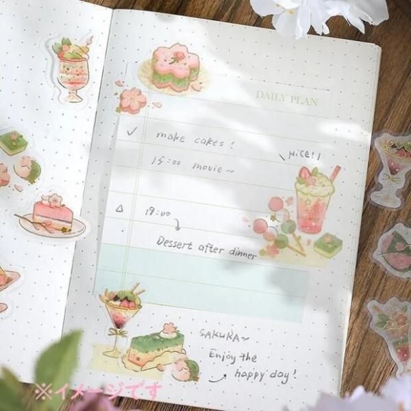 デコ ステッカー シール マステ素材 ケーキ 和菓子 上品 シールパック 手帳 ノート カード ラッピング 色紙 封止め プリン ロールケーキ カップ ソーサー いちご