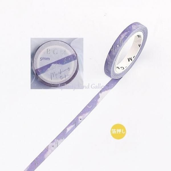 ビージーエム 幅5mm マステ 箔押しシリーズ ラインテープ/夜空 7月7日 七夕 星空 ながれぼし 流れ星 スターデザイン よぞら