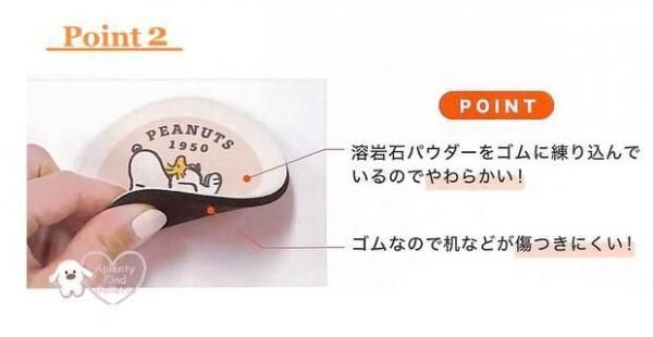 かわいい ピーナッツキャラクターズ コースター 溶岩石パウダーを ゴムに練りこみ作成 吸水スピードは 珪藻土の 約3倍 ぐんぐん 水滴を 吸います やわらかい素材