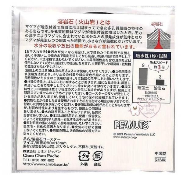 かわいい ピーナッツキャラクターズ コースター 溶岩石パウダーを ゴムに練りこみ作成 吸水スピードは 珪藻土の 約3倍 ぐんぐん 水滴を 吸います やわらかい素材