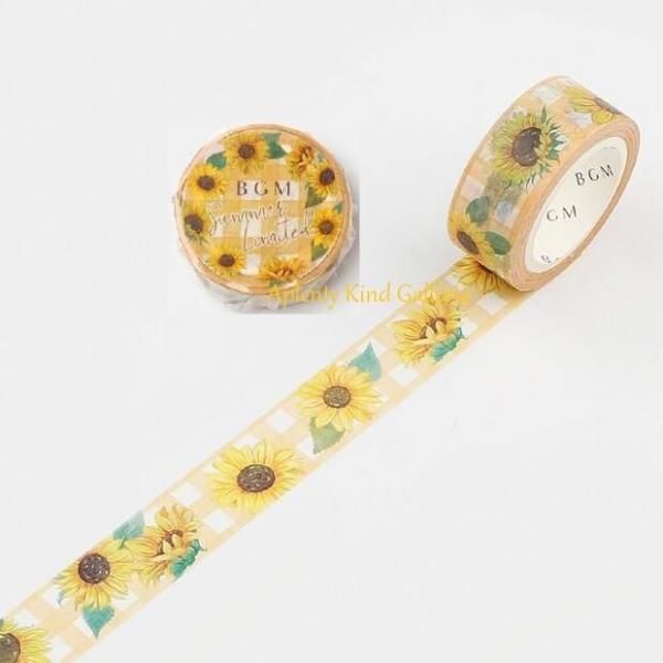 ビージーエム 幅15mm マステ サマーデザイン 夏柄/ひまわり 向日葵 フラワーデザイン お花柄/DIY 暑中お見舞い はがき 夏デコ