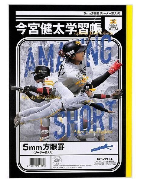 福岡 ソフトバンク ホークス 内野手 いまみや けんた 遊撃手 ショート 5ミリ 方眼ノート 入学 進級 新学期 通塾 IMAMIYA 6