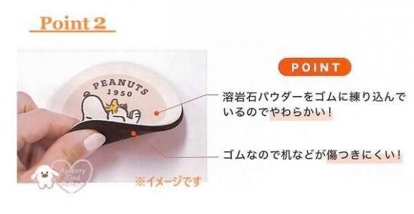 かわいい ちびのミイ キャラクター コースター 溶岩石パウダーを ゴムに練りこみ作成 吸水スピードは 珪藻土の 約3倍 ぐんぐん 水滴を 吸います やわらかい素材