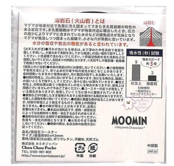 かわいい むーみん キャラクター コースター 溶岩石パウダーを ゴムに練りこみ作成 吸水スピードは 珪藻土の 約3倍 ぐんぐん 水滴を 吸います やわらかい素材