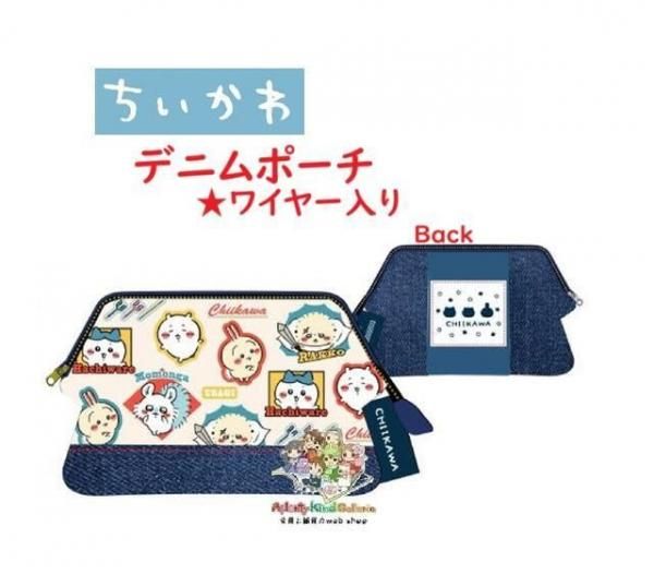 おしゃれ チイカワ ぽーち ジーンズ生地 切り替え 布製 持ち運び 便利 バッグイン バッグ 化粧ポーチ コスメケース 旅行 ハチワレ うさぎ モモンガ