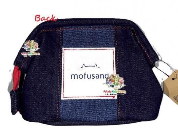 おしゃれ ねこちゃん もふさんど ぽーち ジーンズ生地 切り替え 布製 持ち運び 便利 バッグイン バッグ 化粧ポーチ コスメケース 旅行 ネコ にゃんこ 猫