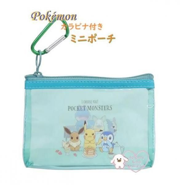 ポケモン ポーチ カラビナつき ファスナー開閉 カラー付き クリアタイプ ケース Clear Poach ポッチャマ イーブイ ピカチュウ Pokémon マイマーク