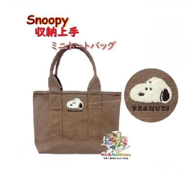 PEANUTS サガラ刺繍 外ポケット 底板付き 帆布製 ランチバッグ 仕切あり サブバッグ ミニカバン MINI TOTEBAG