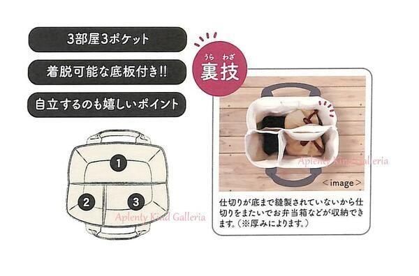 仕切が底まで縫製されていないので、仕切りをまたいで、お弁当箱の収納が出来ます。