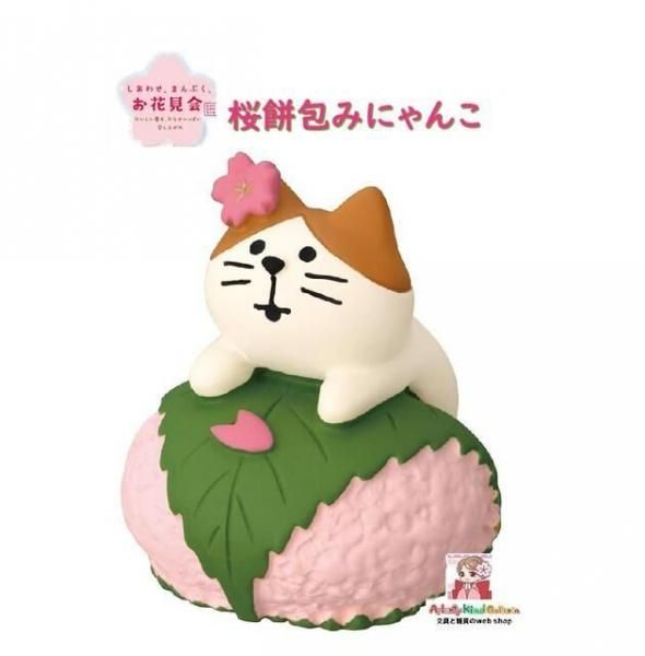 幸せ満腹 お花見会 concombre ねこ さくらもち お饅頭 和菓子 縁起物 置物 DECOLE デコレ 陶器 置き物 サクラ 飾り かわいい サクラ餅 にゃんこ ネコ 猫ちゃん 【3cmメール便不可】