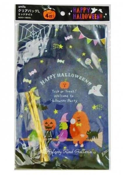 【 HAPPY HALLOWEEN 】 クリアバッグ/ Clear Bag NO.45499 -L サイズ ミッドナイト ネイビー系 4枚入 ビニタイ 4本入り フィルムバッグ