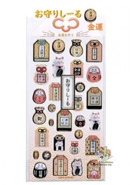 縁起物に囲まれて お守り型 シール HAPPY クリスタル風 キラキラ Clear グミ風 美しい ステキ 応援 ぐみ風 金運アップ 運気上昇 宝 文字入り 財 金運UP 達磨 祈願
